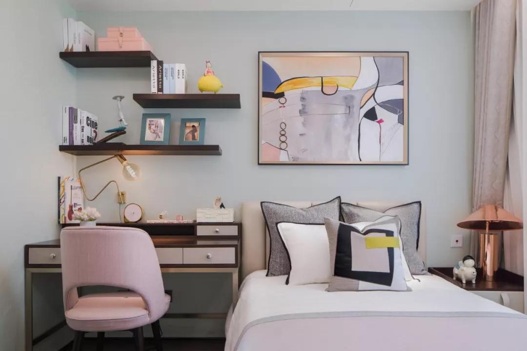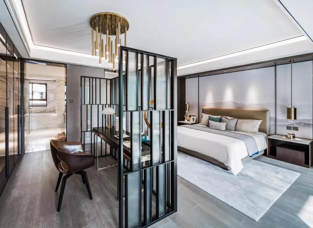 二层为主卧和女孩套房,具有最好的景观资源,主卧坐拥最佳的室外景观,连通开放式主卫及衣帽间。在现代精致美学之中,将材质的属性对比,在工艺中表达出来,演绎当代美学的精髓。